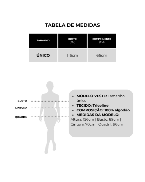 ARRASTE A FOTO DO PRODUTO PRO LADO E CONFIRA COMPOSIÇÃO DE TECIDOS E MEDIDAS DE CADA PEÇA.
