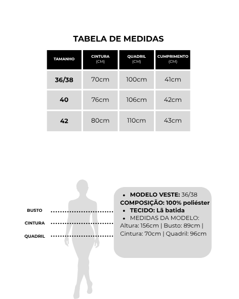 Tamanhos: 36/38 | 40 | 42.