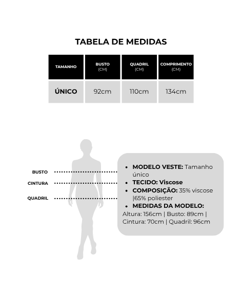 ARRASTE A FOTO DO PRODUTO PRO LADO E CONFIRA COMPOSIÇÃO DE TECIDOS E MEDIDAS DE CADA PEÇA.